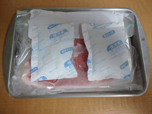 例えば、写真のように凍らせたい食材の上に保冷材を